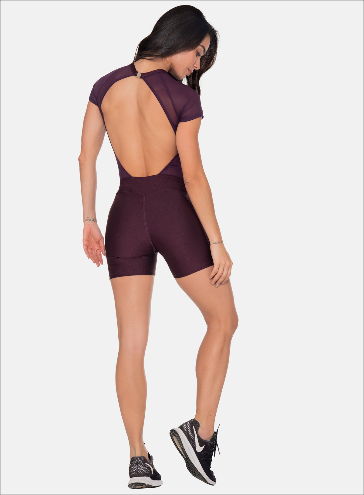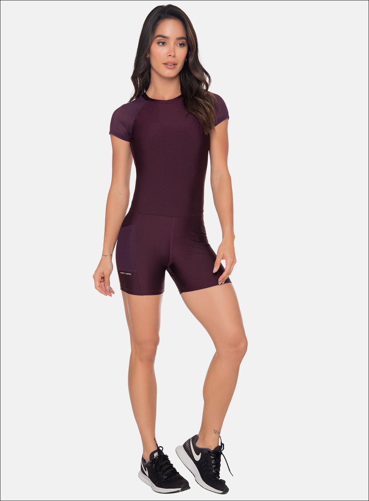 ENTERIZO DEPORTIVO MANGA CORTA CON CON CORTES DECORATIVOS EN TELA SEMI