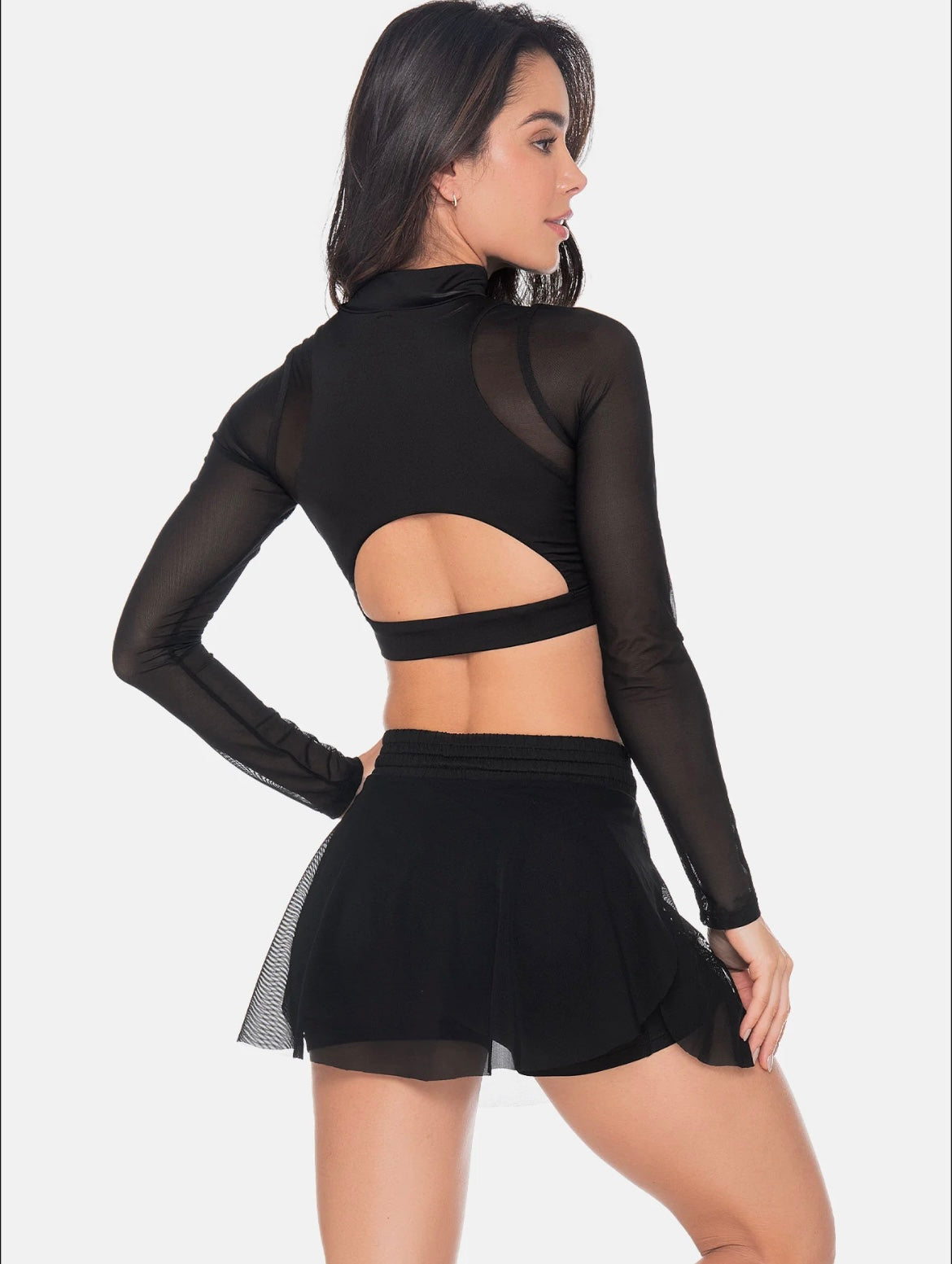 TOP DEPORTIVO CUELLO ALTO CON MANGAS, COSTADOS SEMITRANSPARENTES, Y FAJON CON ELÁSTICO INTERNO PARA MAVOR AJUSTE
